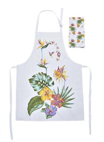 PC-193032 APRON SET 2 60X0,5X80CM 0,150KG BLANC VERT COTON