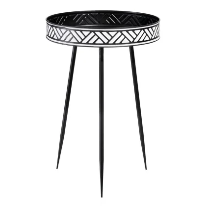 108149 PETIT TABLE NOIR-BLANC MÉTAL ETHNIQUE 49 X 49 X 61 CM