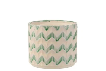 3226 FLOWERPOT ZIGZAG CERAMIC GRN L (17x17x15cm)