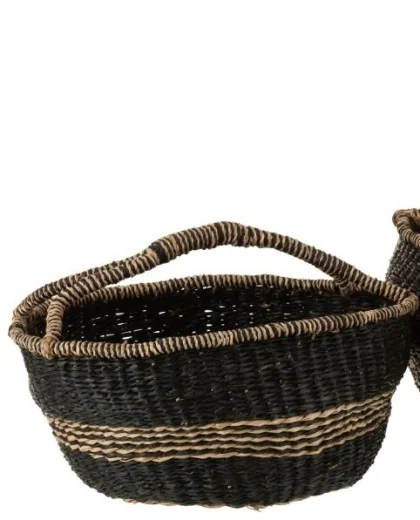 1602 S/2 BASKETS ROUND SEAGRASS BLA (60x60x26cm) G