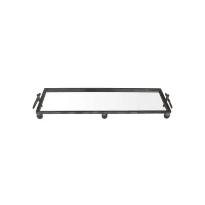XET-1330 PLATEAU DECO 11x31x120CM 5,350KG NOIE METAL VERRE