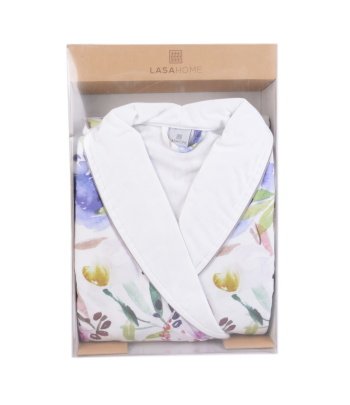 PEIGNOIR TAILLE S 1,421KG BLANC VERT ROSE COTON