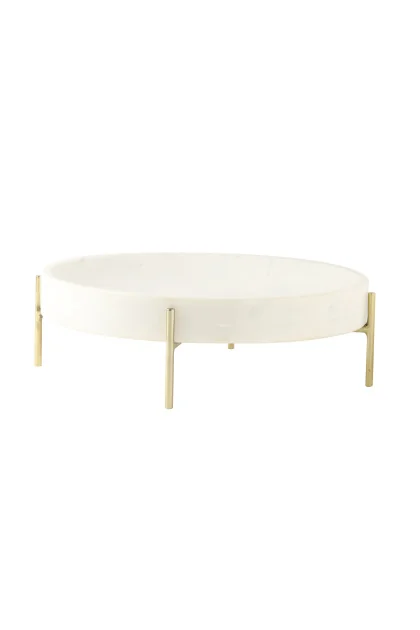 6609725 PLAT SUR SOCLE 32x9CM 6,200KG BLANC DORE MARBRE DORE