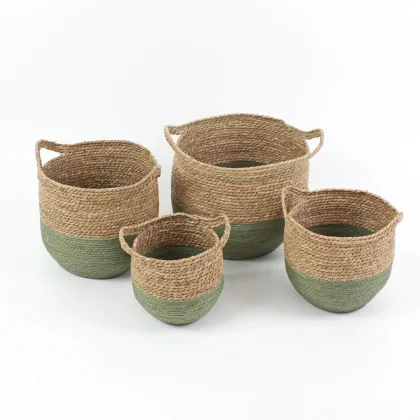 47651 Basket Valencia, brown-green, seagrass L35x35x31cm